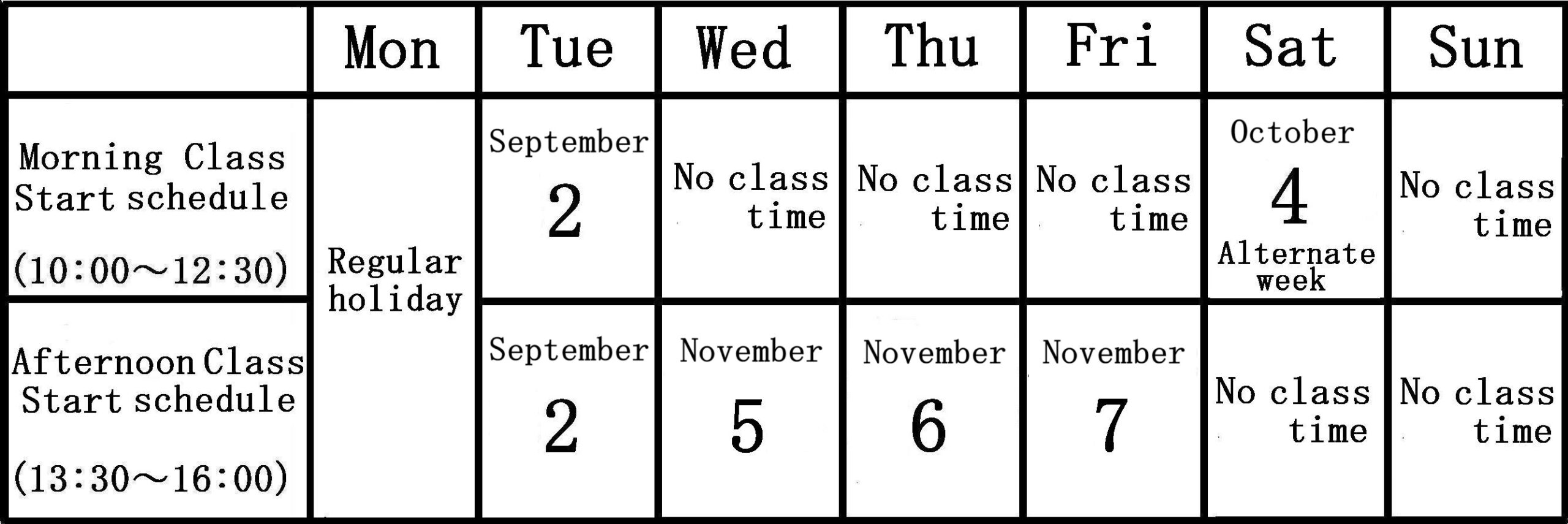 Weekly class program starting in September and November.