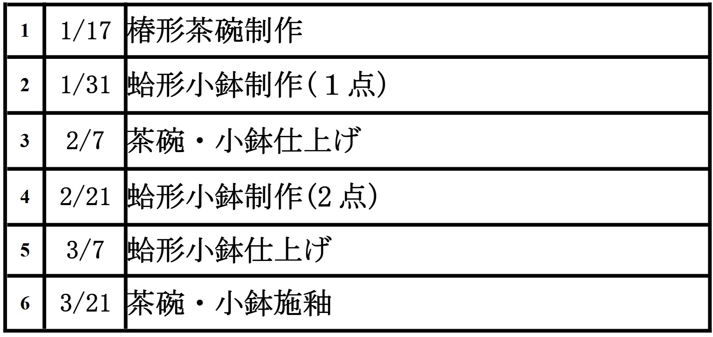 12・2月開講の「初めての陶芸教室」
