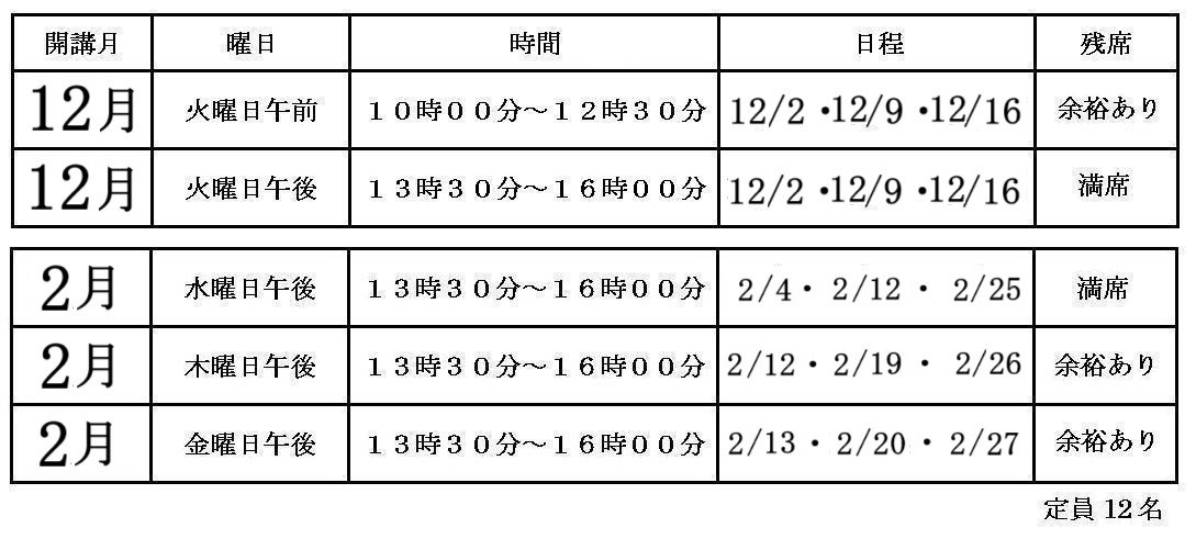 12・2月開講の教室プログラム
