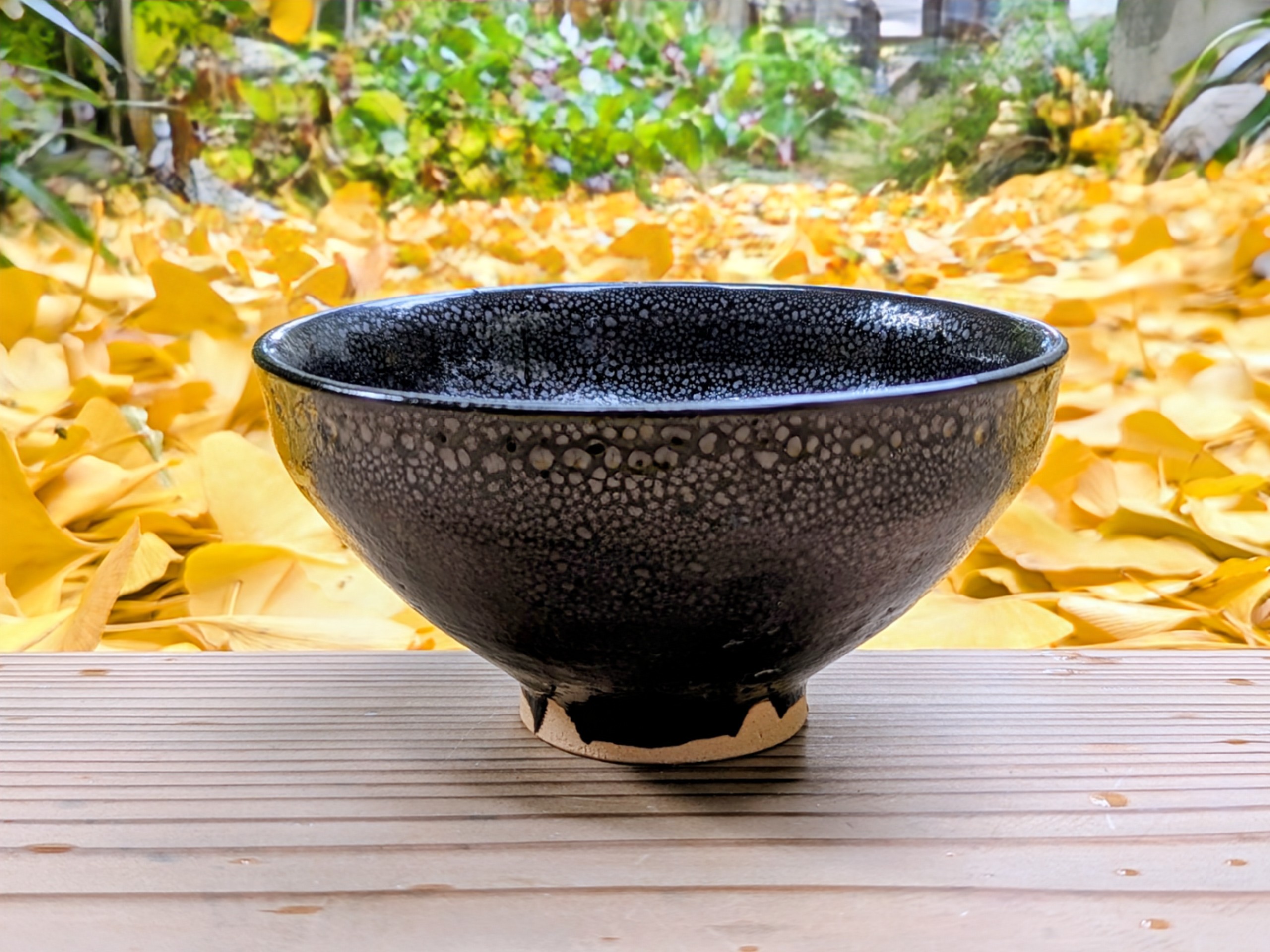 今回挑戦していただくのは、漆黒の器面に油のしずくが無数に飛び散った油滴天目茶碗(ゆてきてんもくちゃわん)。
