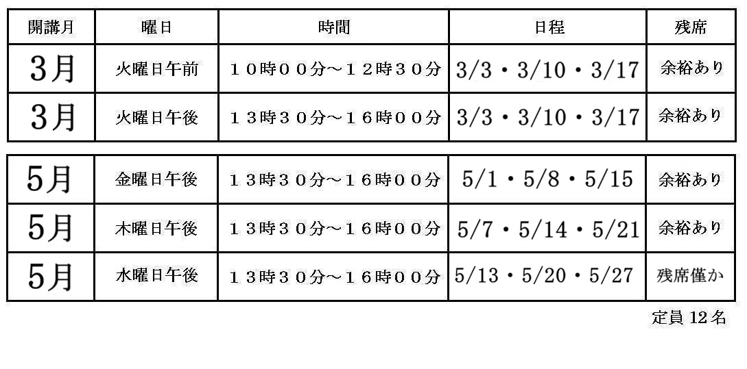 3回終了後は、4回目から週1コースにご参加いただけます。